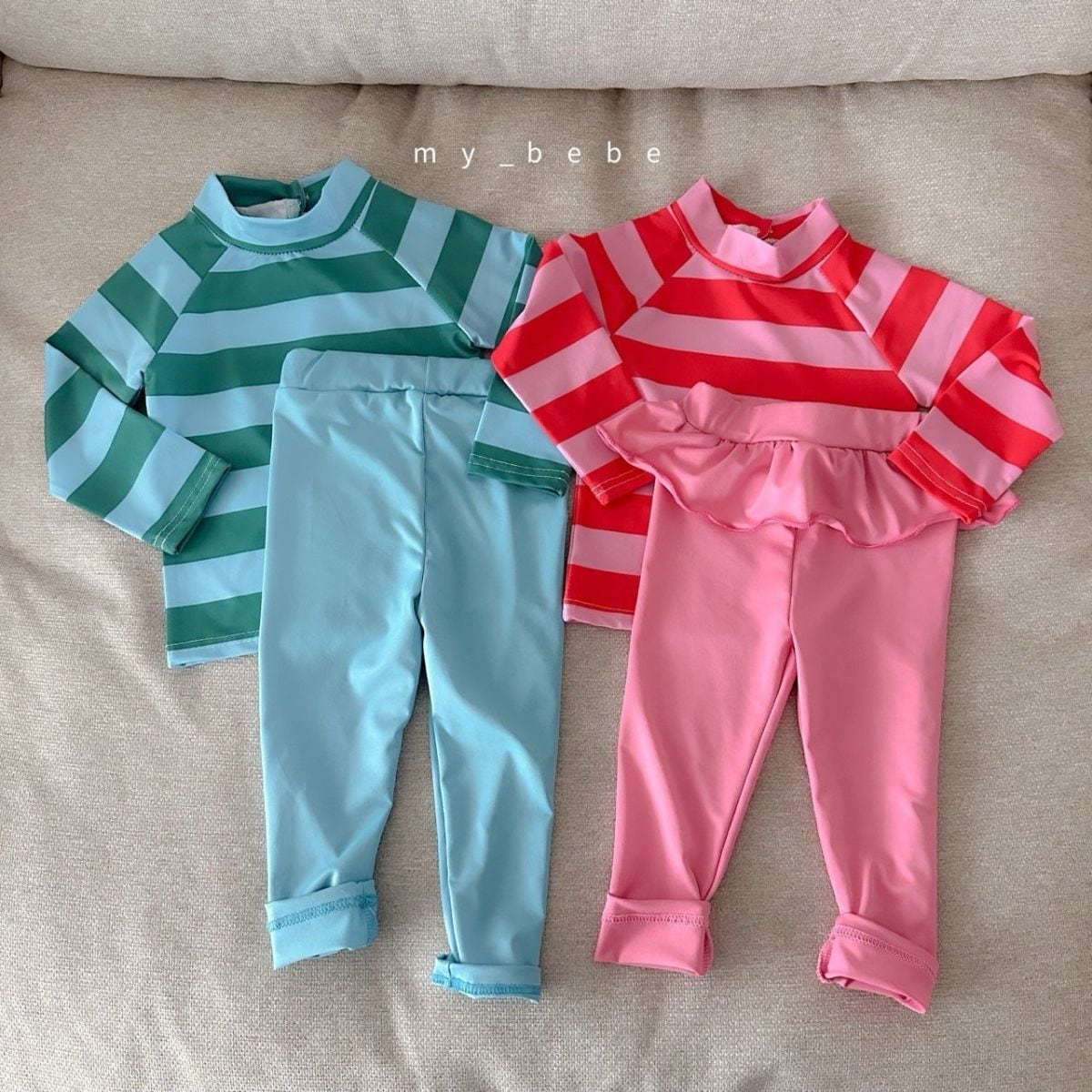 長袖ラッシュガードセット ソラ(基本レギンスセット) ピンク(スカートレングスセット) S〜L(1〜6歳)my bebe