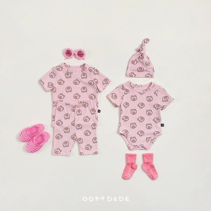 **【予約】ハッピーフレンズロンパースボンネットセット S、M (〜12ヶ月)oottbebe**