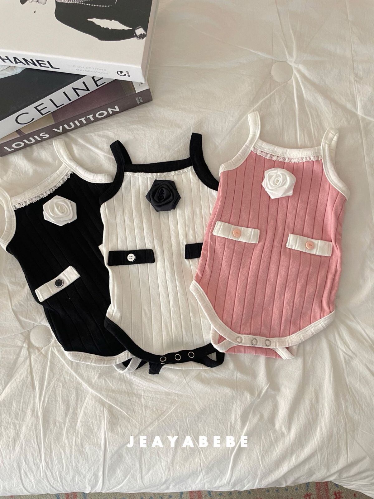 **【予約】コサージュロンパース BS、BM(60〜80)JEAYA**