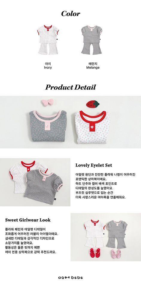 **【予約】ラブリーアイレット上下セット XS〜XL(75〜120)oottbebe**